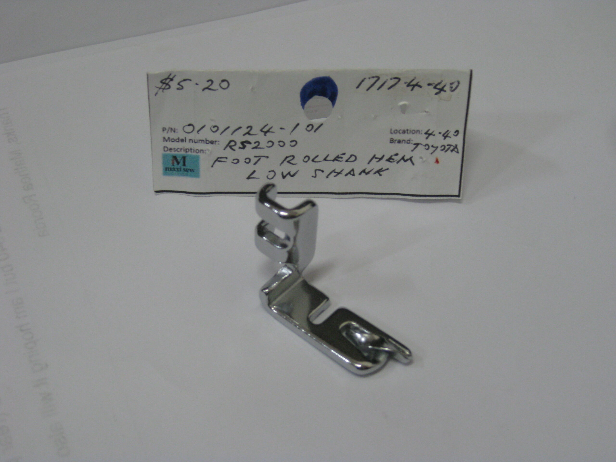 0101124-101 low shank rolled hem foot. Toyota RS2000 sewing machine.