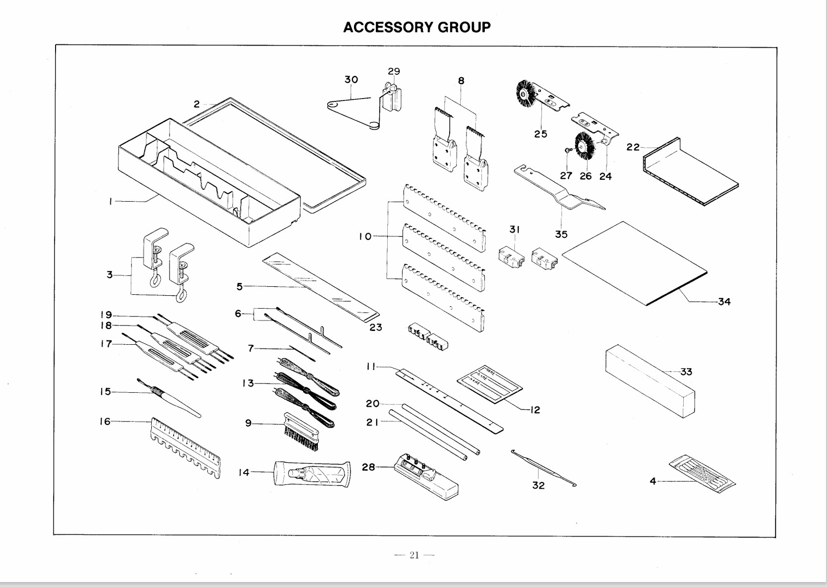 12492914 Box Accessory Box Complete No 1-33. item Page 21. Singer SK860 Knitting machine.